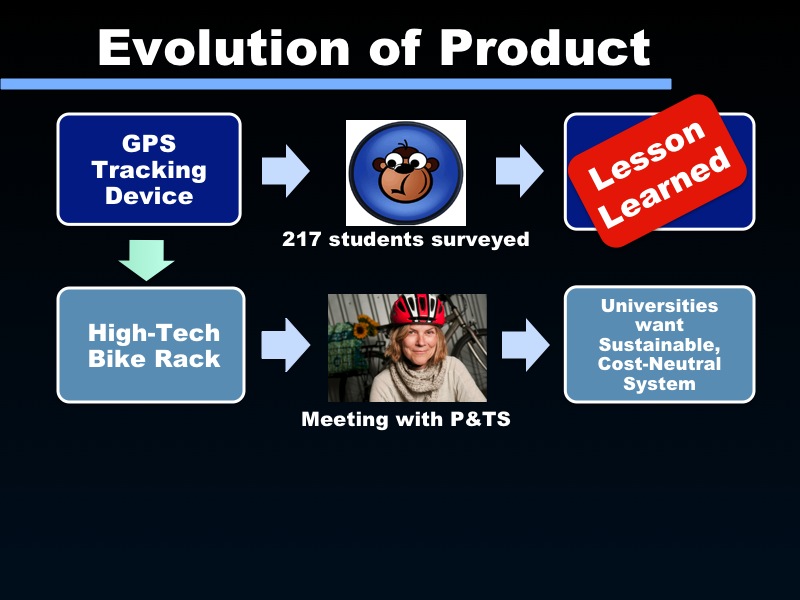 Only 5 out of the 55 students had taken an entrepreneurial class before. None of the students were domain experts in their areas, and each team had to figure out how to contact potential customers and channel partners. Yet every team did figure out how to conduct extensive out of building Customer Discovery. (By design we didn’t give them too much Customer Development theory. The emphasis was on getting out of the building and testing their hypothesis.)