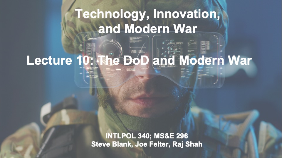 We just held our thirteenth session of our new national security class Technology, Innovation and Modern War. Joe Felter, Raj Shah and I designed a class to examine the new military systems, operational concepts and doctrines that will emerge from 21st century technologies – Space, Cyber, AI & Machine Learning and Autonomy.